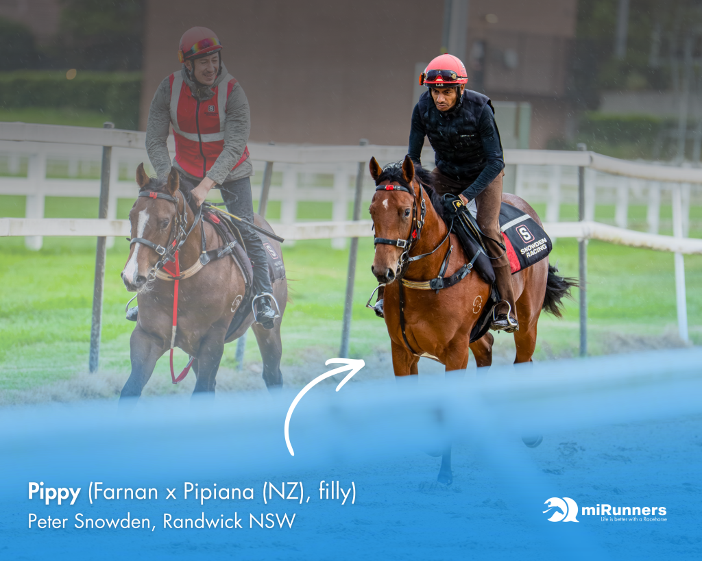 During her time in orientation, Pippy was treated just like a racehorse – immersed in the full routine of a busy Sydney stable. From early morning track work to the sand roll, walkers, and the energy of a busy Group 1-winning operation, she took it all in stride and never missed a beat.